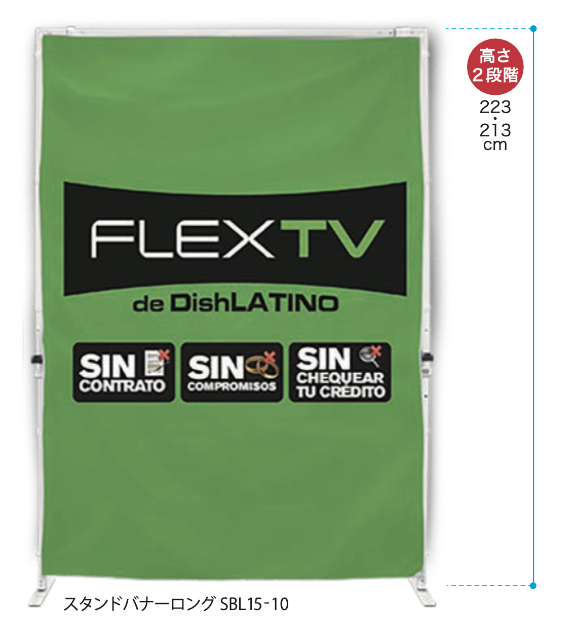 間仕切りとしても活用できる自立型スタンドバナーのロングタイプ。