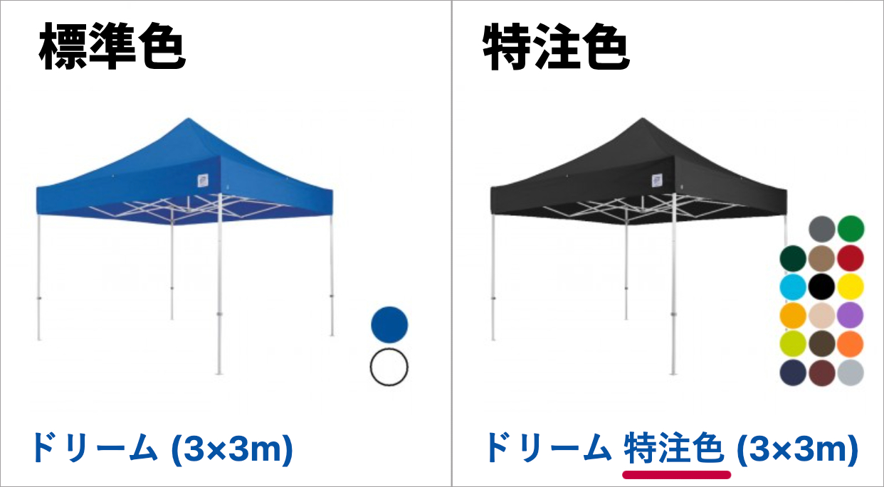 イージーアップテントの標準色、特注色って何が違うの?