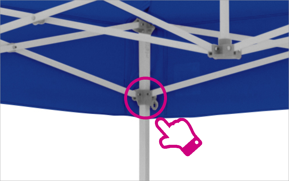 スライダーとは、天幕を持ち上げてロックするための部品です。 各支柱に1個ずつ取り付けられています。
