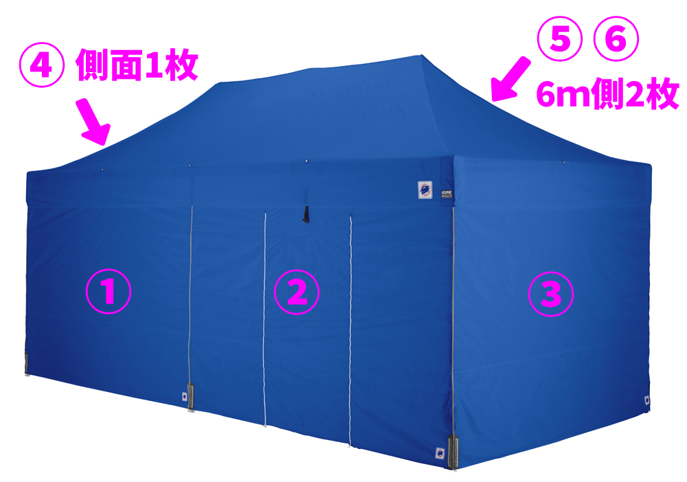 下記で3×6mテント対応の横幕と、使用方法を詳しくご紹介します。