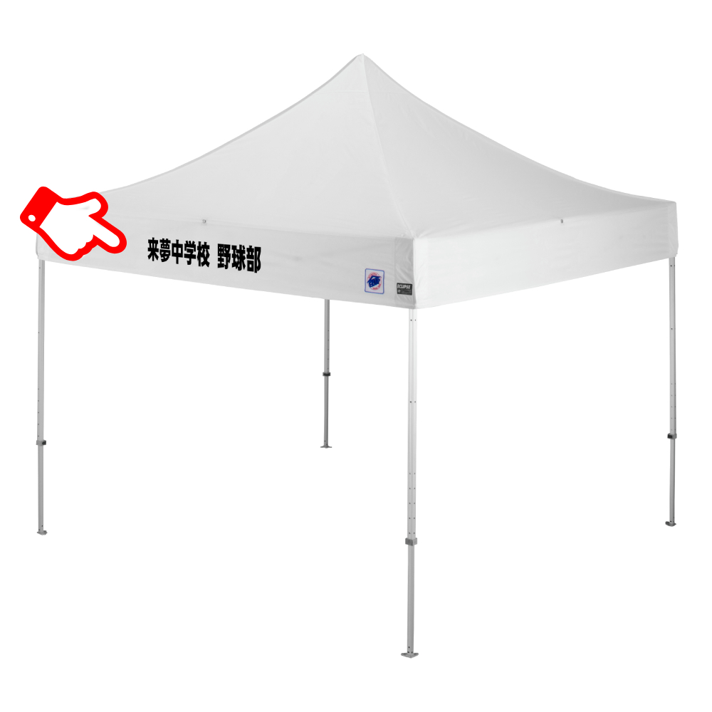 まずはテントサイズと、テントのどの部分に名入れするかを決めてみると注文しやすいかもしれません。