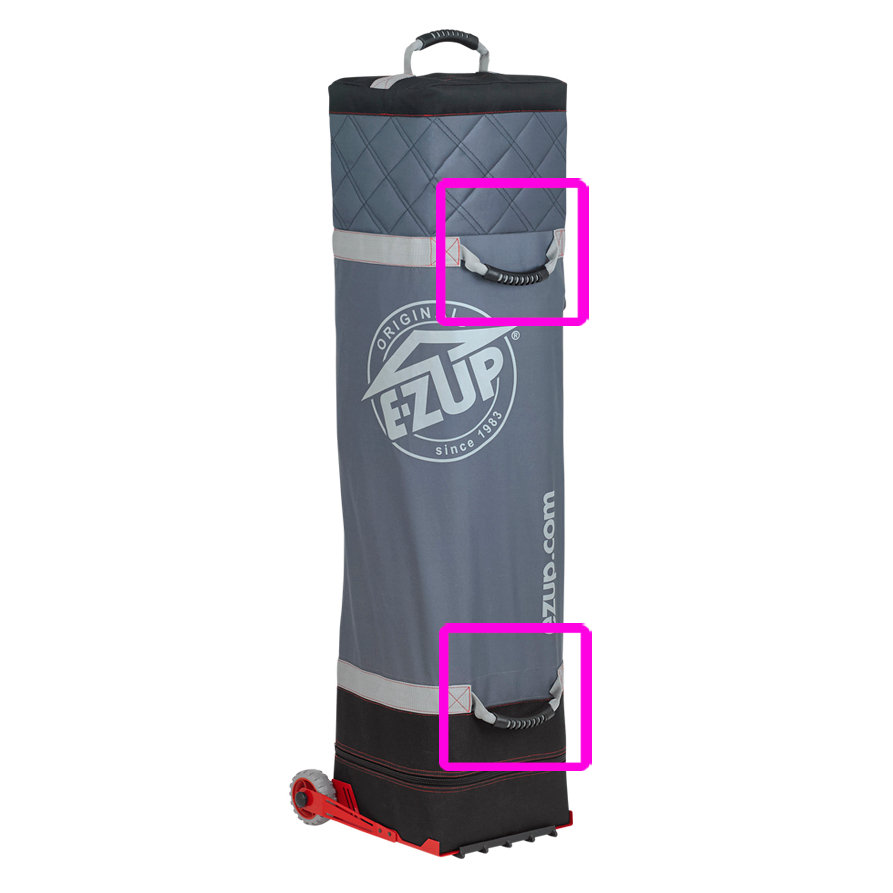 自立式ではないものは、保管時、移動中に立ち止まる時には、バッグごとイベント用テントを横に倒す、もしくは立てかける事になります。