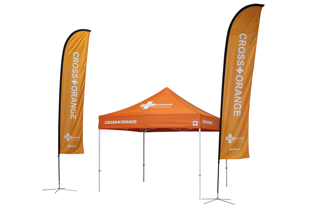 CROSS ORANGE様 DX30 (3×3m) イベント 導入された商品 デラックス (3×3m) スチール フラッグ[ブレード] 【使用モデル】 ・デラックス スチール30 オレンジ (3×3m) 1色プリント ※別途料金 ・フラッグ ブレード ※プリント料金込 ※ 会員登録すると概算価格が表示されます。 会員様は概算プリント料金もご確認いただけます。 概算のため、ご予算はお気軽にご相談ください。 ▶ お問合せはこちら ----------------------------------------------- ご予算に沿ったご提案も可能です。 お気軽にご相談ください。 【青、白、緑、赤もございます】 ▶ デラックス (3×3m) はこちら ▶ アウトレット デラックス (3×3m) はこちら 【低価格モデル ドリーム】 ▶ ドリーム (3m×3m)青・白はこちら ▶ ドリーム (3m×3m)特注色はこちら ----------------------------------------------- より頑丈なイベントテントをお探しの場合は、エンデバーシリーズをご検討ください。 ▶ エンデバー 詳しくはこちら