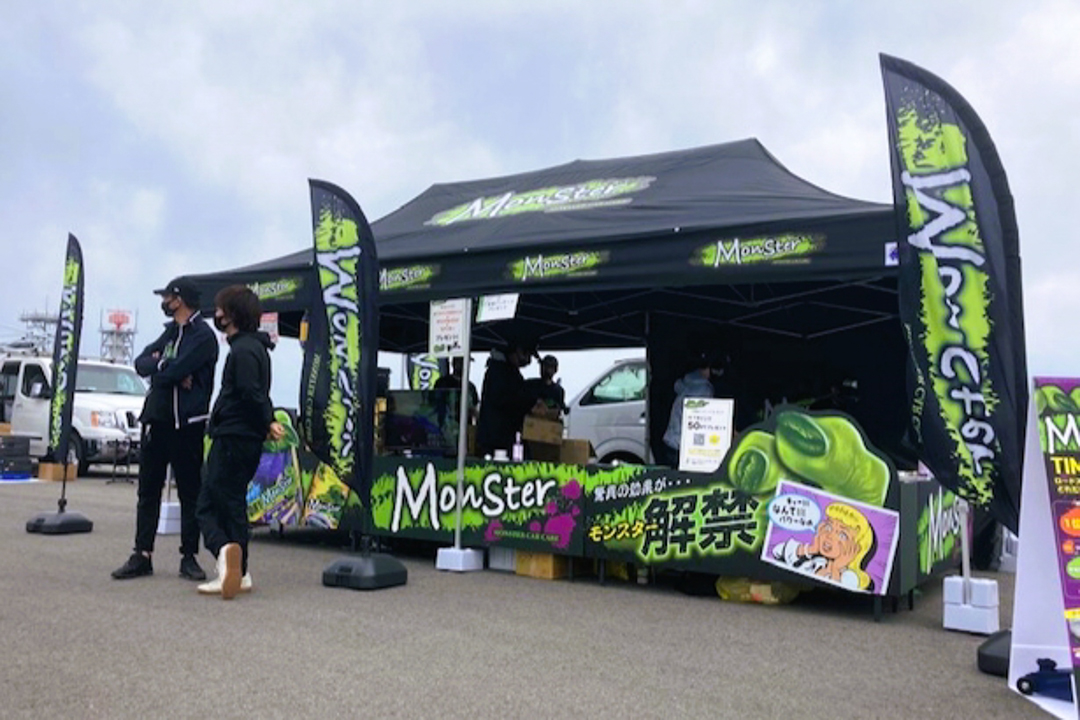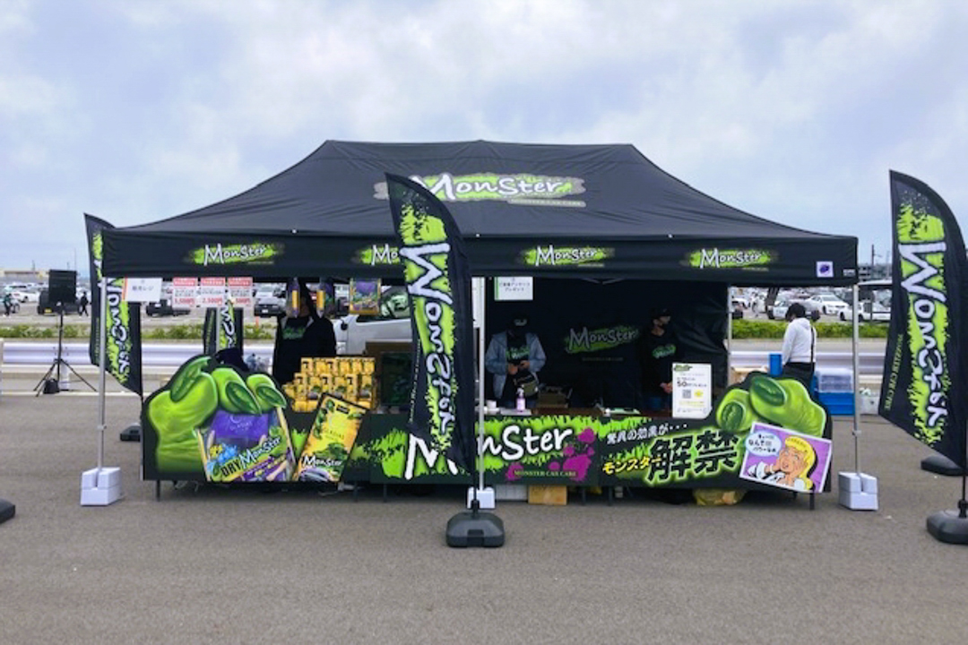 人気カラーのブラック天幕にロゴが映える、ブランドイメージを再現したかっこいいオリジナルテントを作製いただきました。