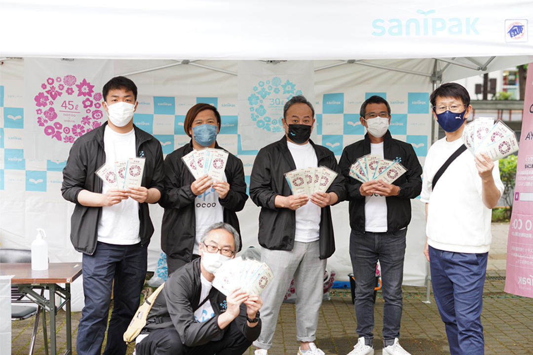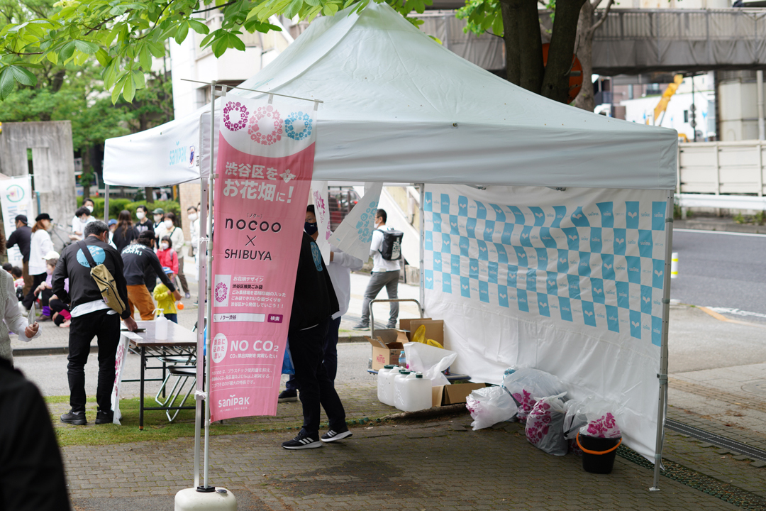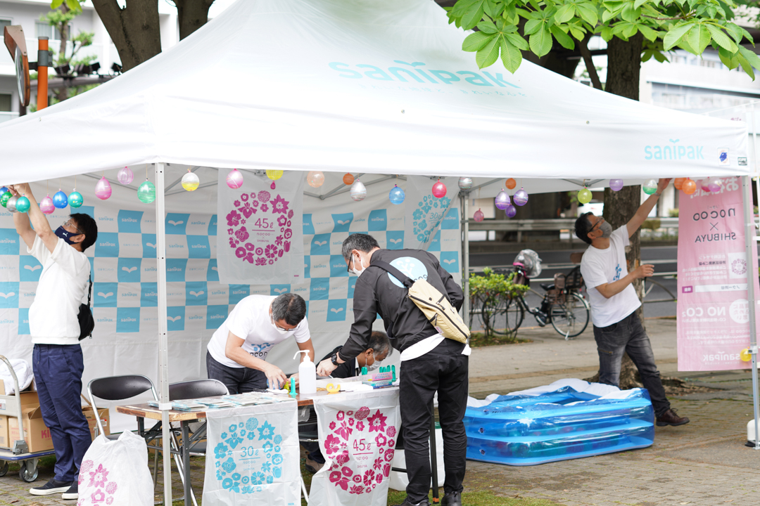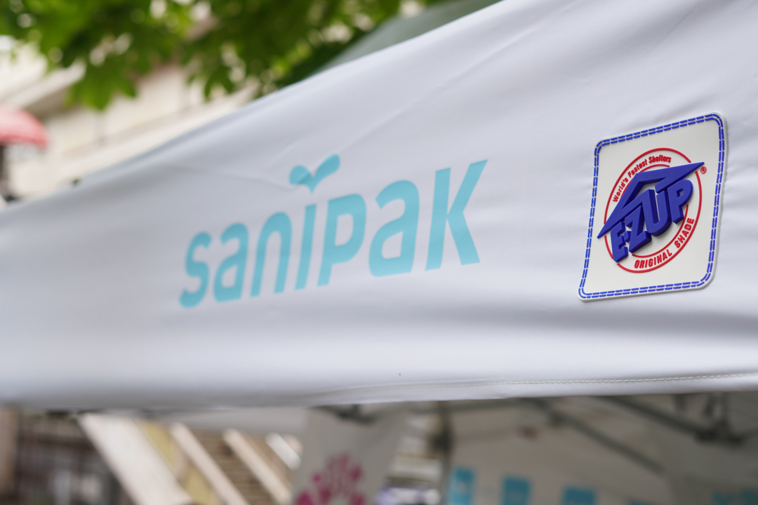 白天幕とプリントカラーがマッチし、爽やかなイメージのオリジナルテントに仕上がりました。
