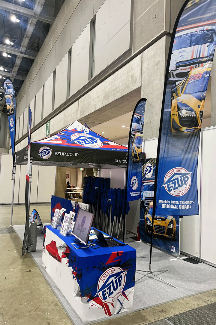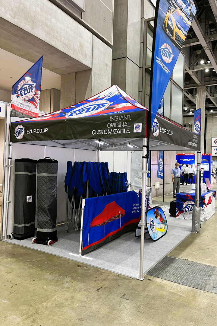天幕は鮮やかな全面プリント、さらに販促ツールをプラスする事で、より集客力を高めます。