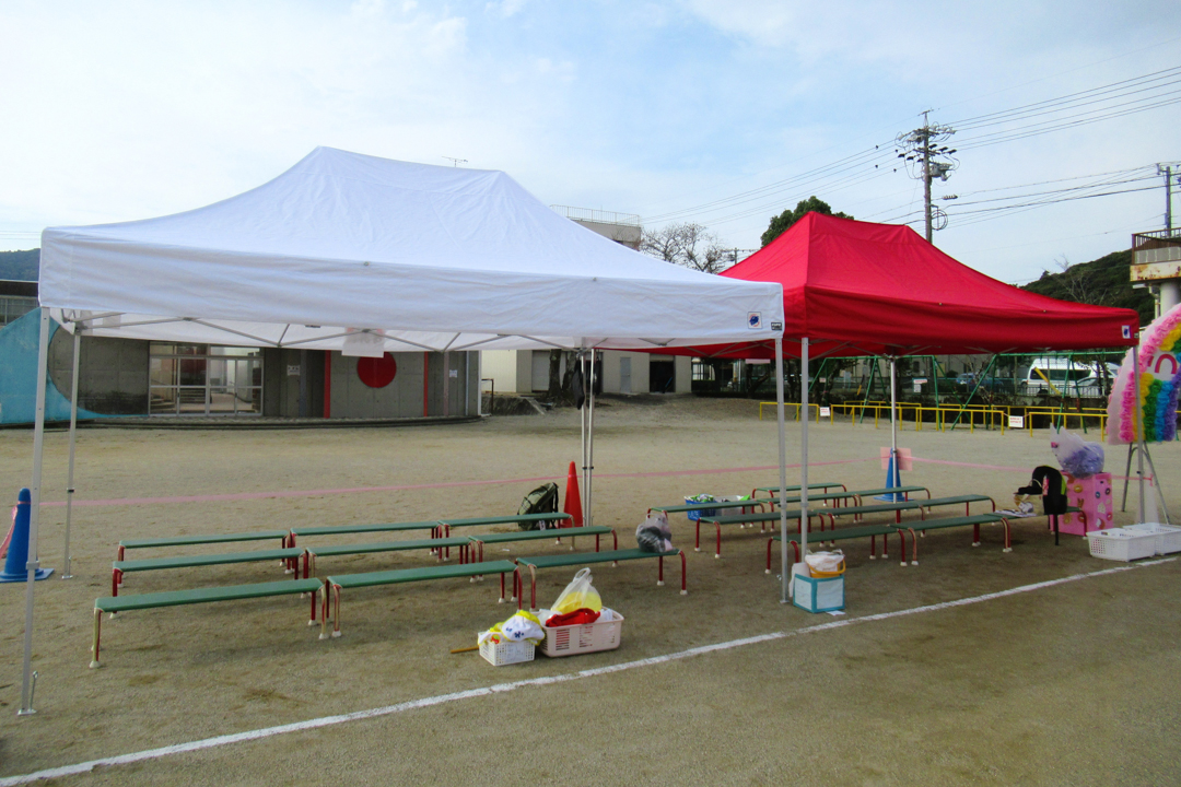 お祭りでのゲームコーナーや出し物、年間行事の受付としても支柱が邪魔になる事がありません。