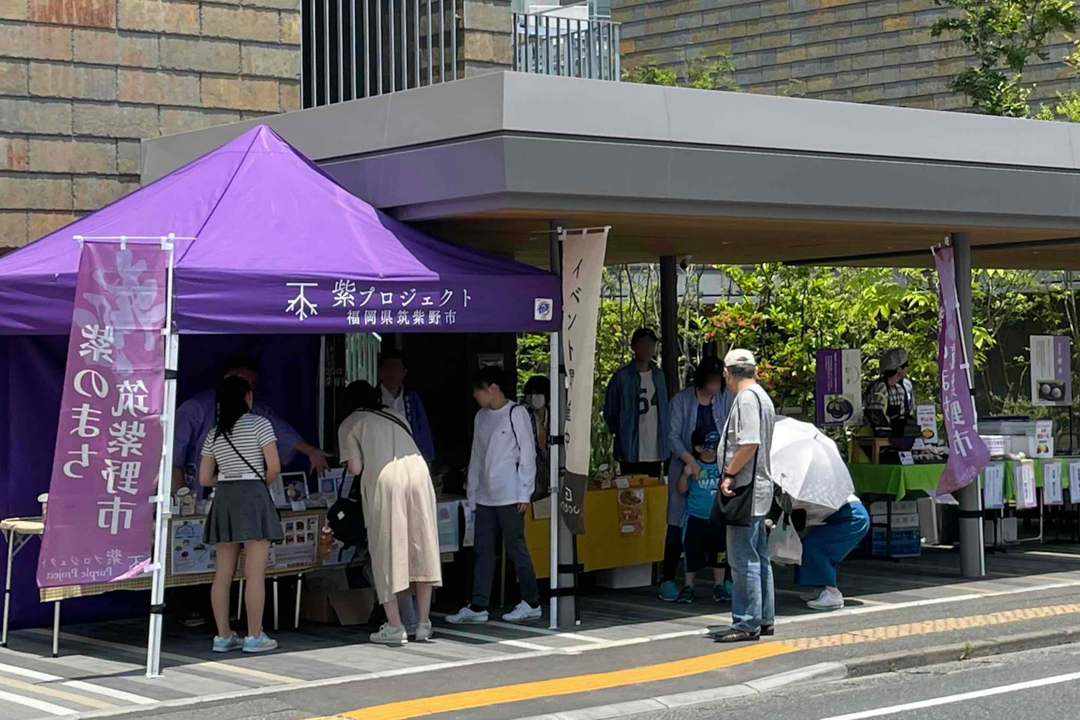特注色パープルの天幕+1色プリントのオリジナルテントです。