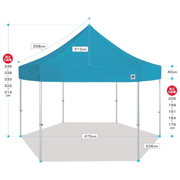 天幕には500デニールの厚手生地を採用。防水性・防炎性・UVカット性にすぐれ、耐久性の高さを実感していただけます。