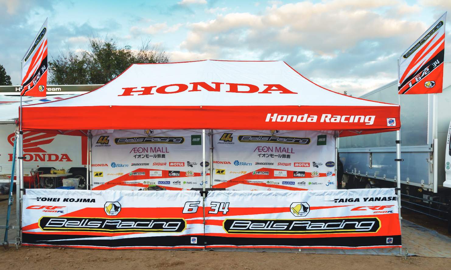 テント天幕と同質の高品質生地(500デニール)に、鮮やなインクジェットプリントを施したハーフ横幕。 専用の水平バーとブラケットを活用して、素早く簡単にテントに取付け、4面をハーフ横幕で囲うことも可能です。