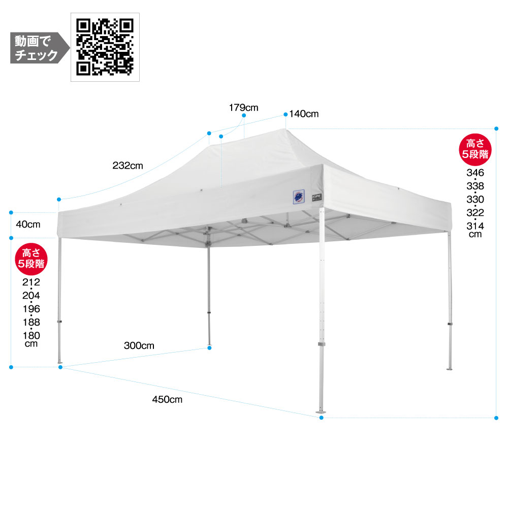 DX45は長方形の天幕でシリーズ中もっとも間口の広いモデル。使用場面も広がります。
