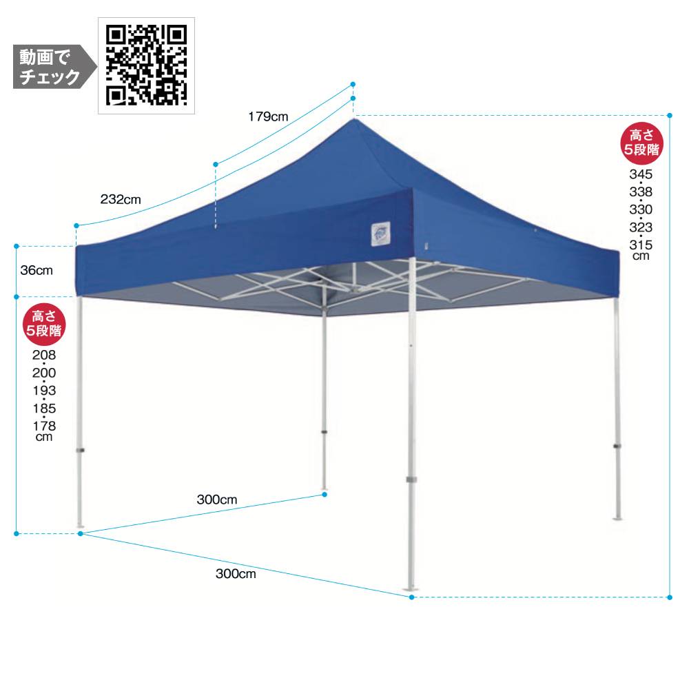 テントの高さは5段階に調節可能で、最高345cmとデラックスシリーズ並みの天井高です。
