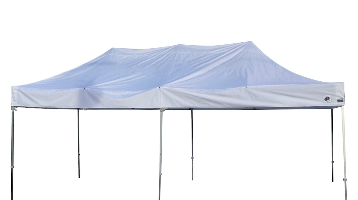 天幕からテント構造物がはみ出しておらず、天幕がピンと張り、見た目が美しいのがお分かりいただけるかと思います。