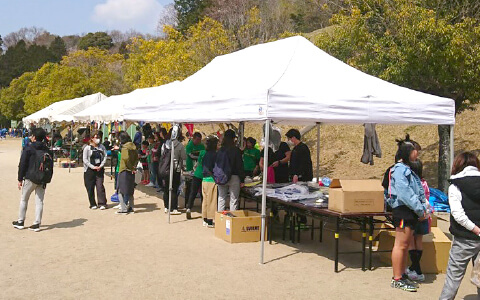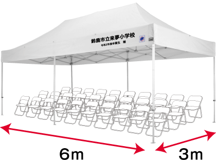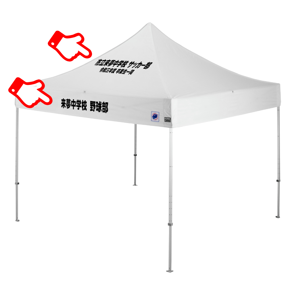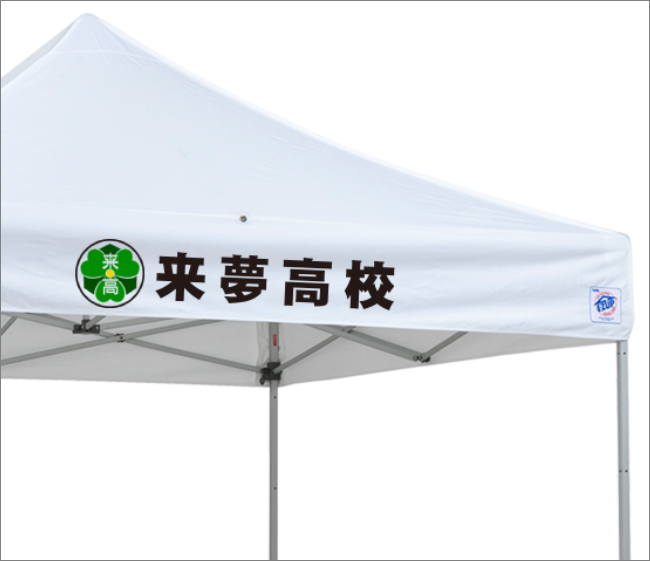 天幕に学校名や団体名を名入れ印刷が可能です。