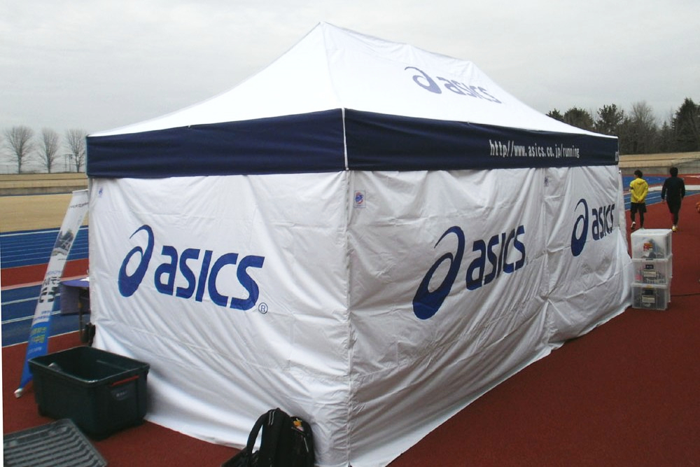 テントや横幕に文字を入れたり、テントを色分けして、どの用途のテントか分かりやすくすることできます。