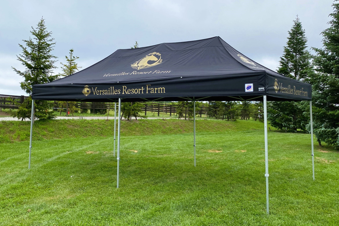 人気カラーのブラック天幕×ゴールドプリントで高級感のあるオリジナルテントです。