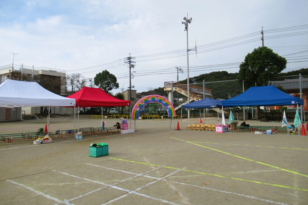 お祭りでのゲームコーナーや出し物、年間行事の受付としても支柱が邪魔になる事がありません。