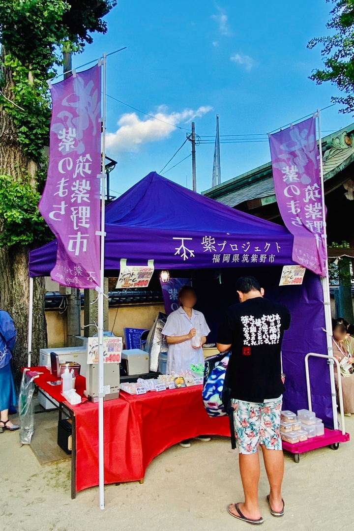 特注色パープルの天幕+1色プリントのオリジナルテントです。